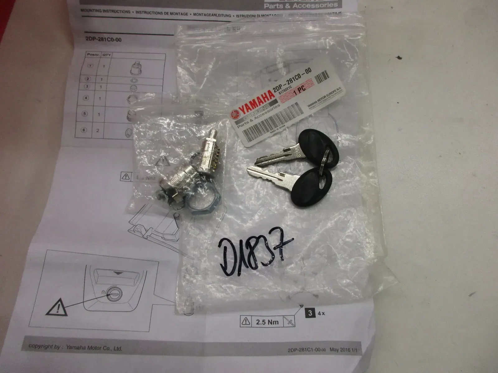 D1837. Yamaha MT 03 Nmax 125 Topcase 2DP-281C0-00 Schloß